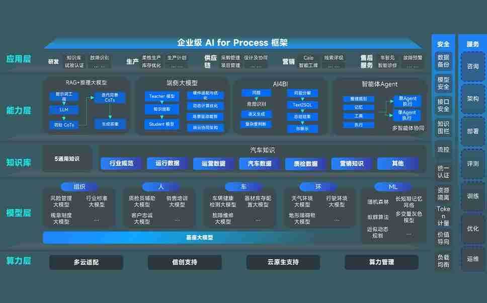 端到端的一站式AI工作空间深度融合了从企业战略规划到日常经营的全流程业务板块,,定向解决车企内部领域多、、、、部门多、、链条长、、、、场景碎片化等难题,,,,支持车企快速构建以AI为核心的生产力写作体系,,,实现任务执行与AI能力的无缝集成与交互